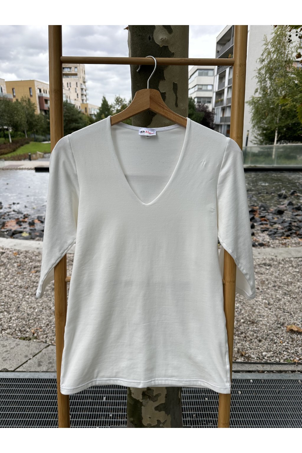 Pohodlné tričko Yamanaya s 3/4 rukávem / Ecru úplet