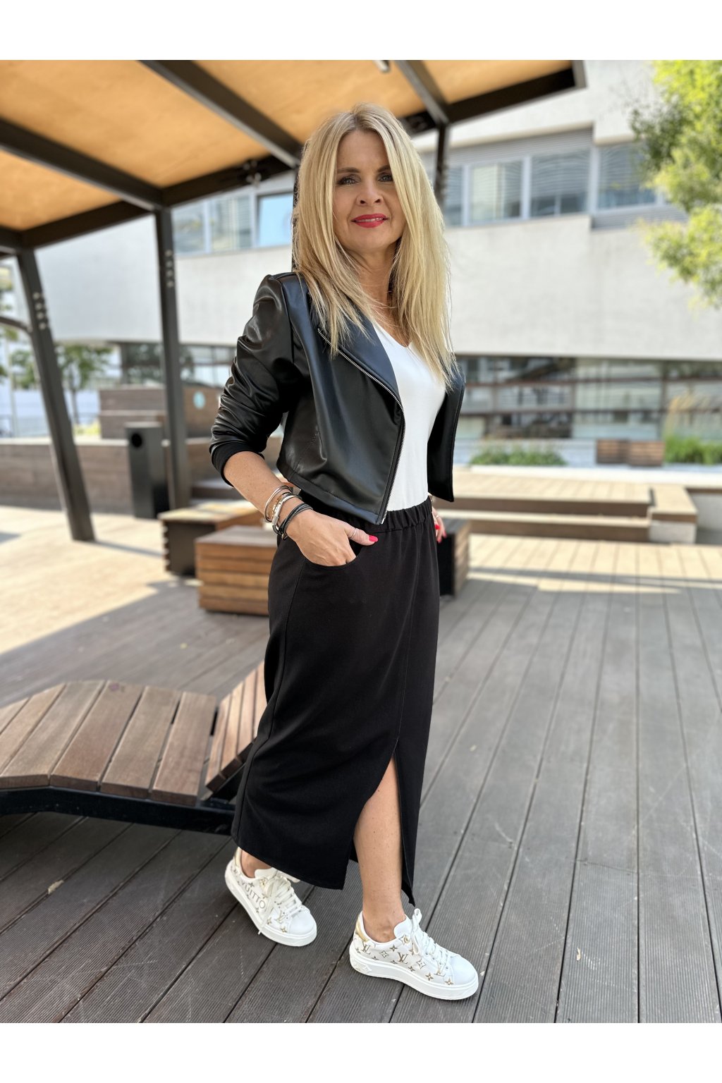 - sukně rovného střihu, která překvapí sexy odhalením nohou