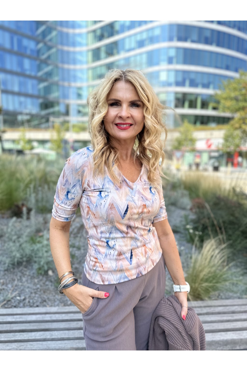 Pohodlné tričko Yamanaya s 3/4 rukávem / Chevron oranžová