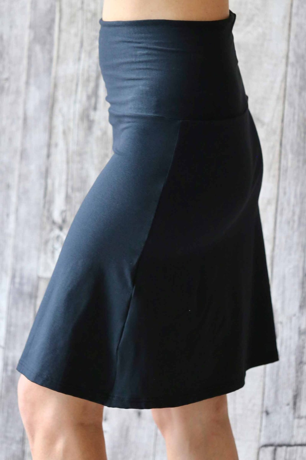 - střih do A vytváří úžasnou siluetu a ohrnovací pás (jako u legín) zajišťuje dokonalé pohodlí