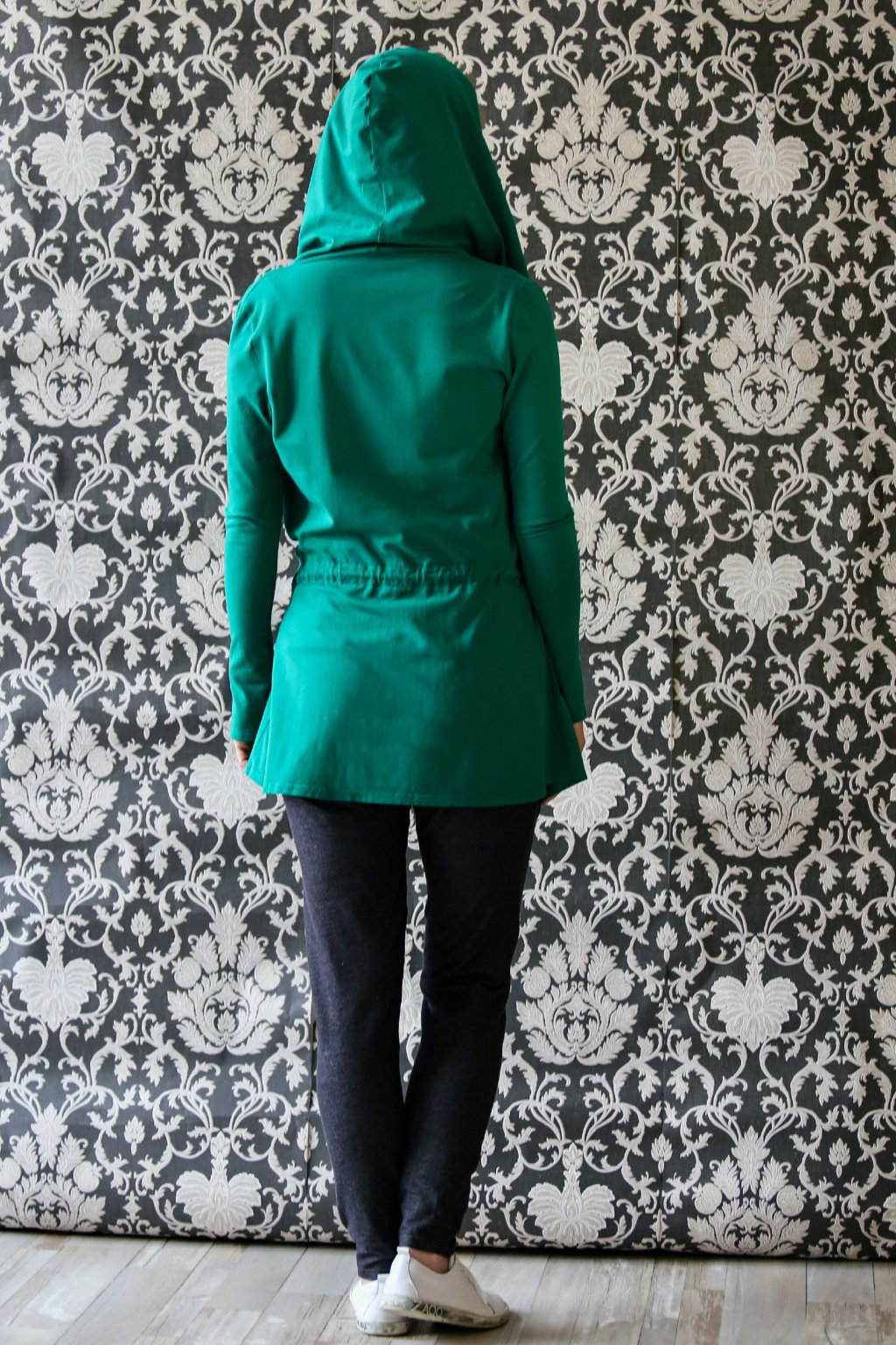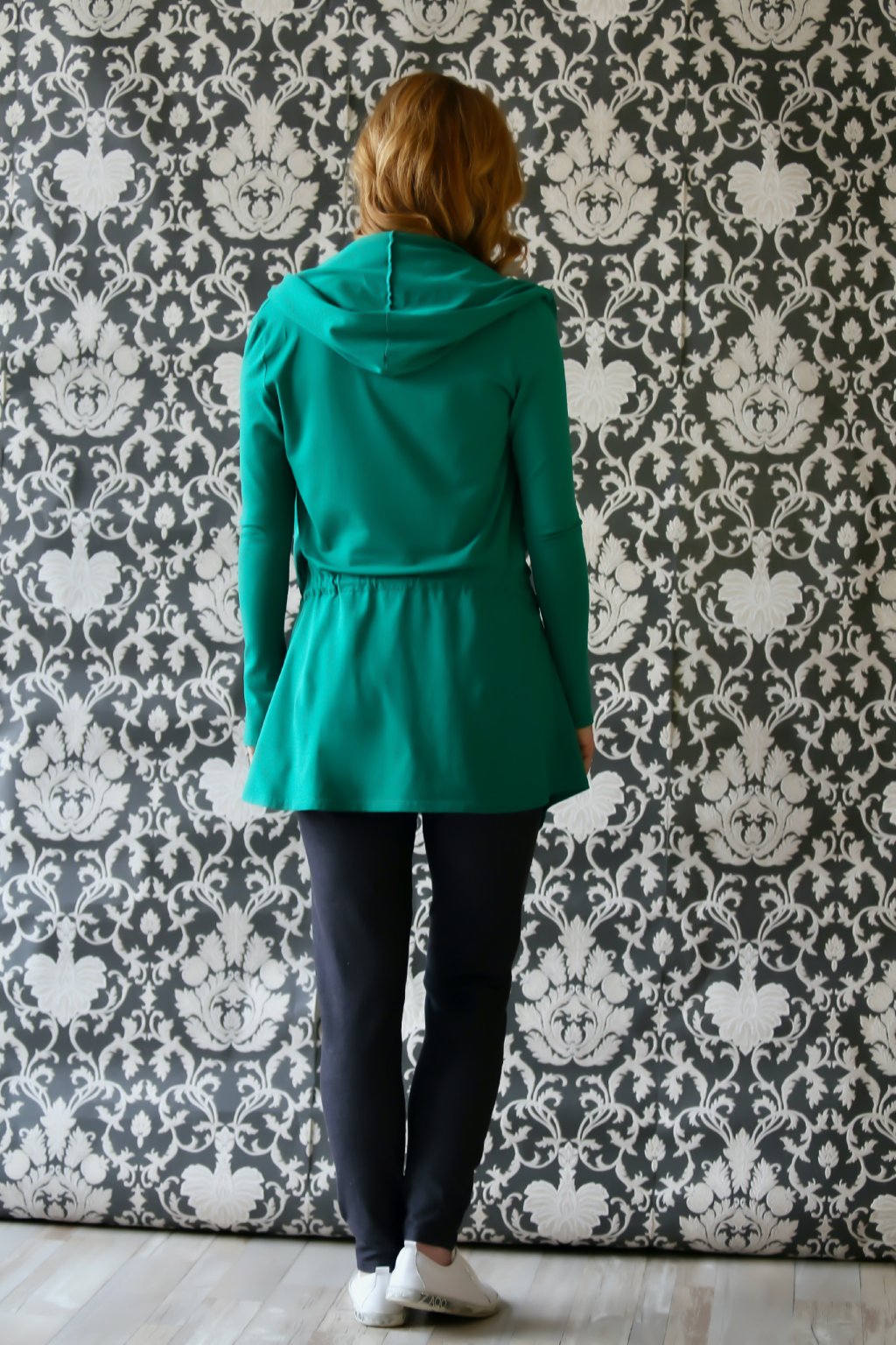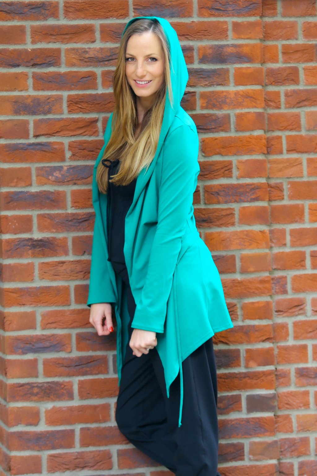 Dlouhé rukávy, kapuca, zavazování, 95 % BIO bavlny, 5% elastanu.