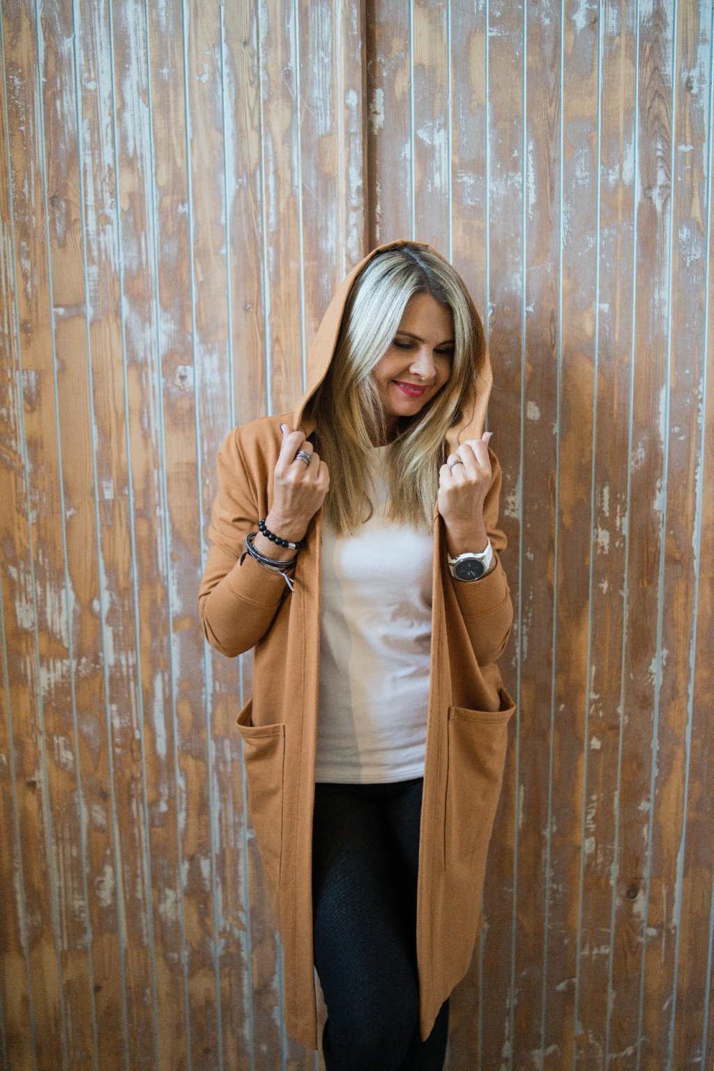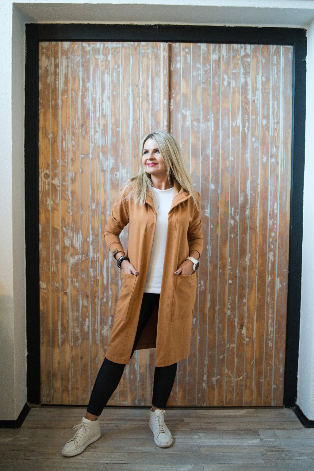 Kabát s kapucou Amfitríta / Karamelová teplákovina
