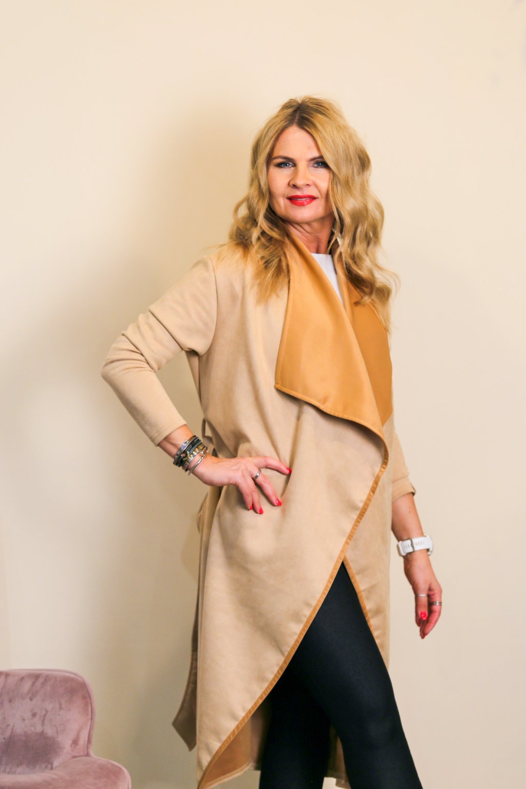 Lehký rozevlátý kabát Gemer / Pískový semiš