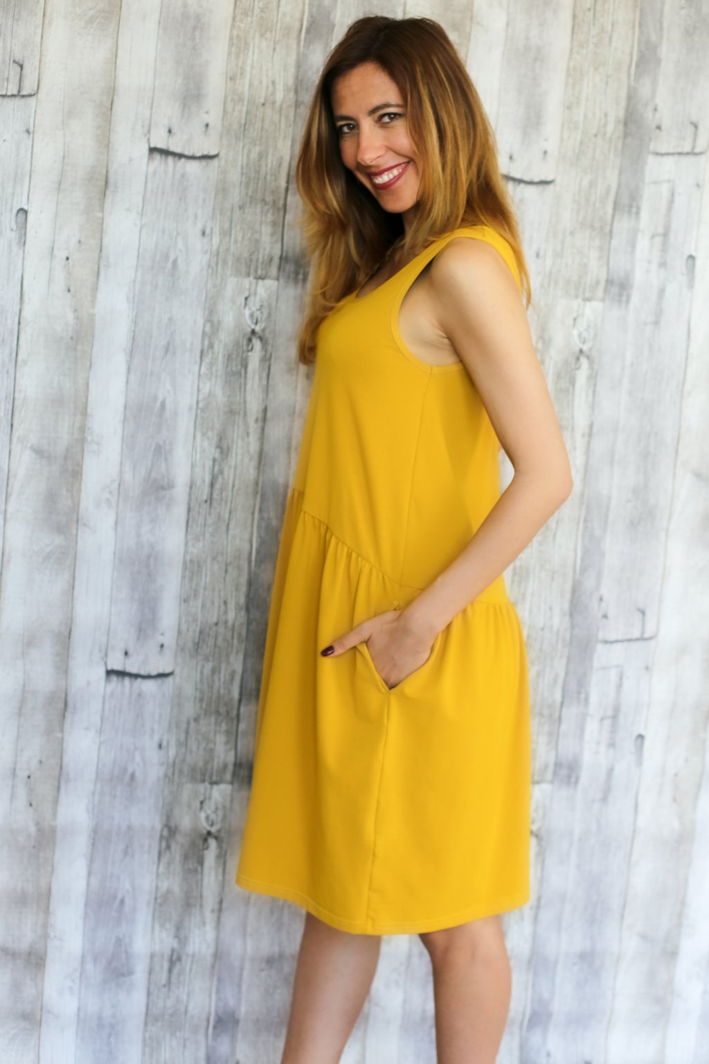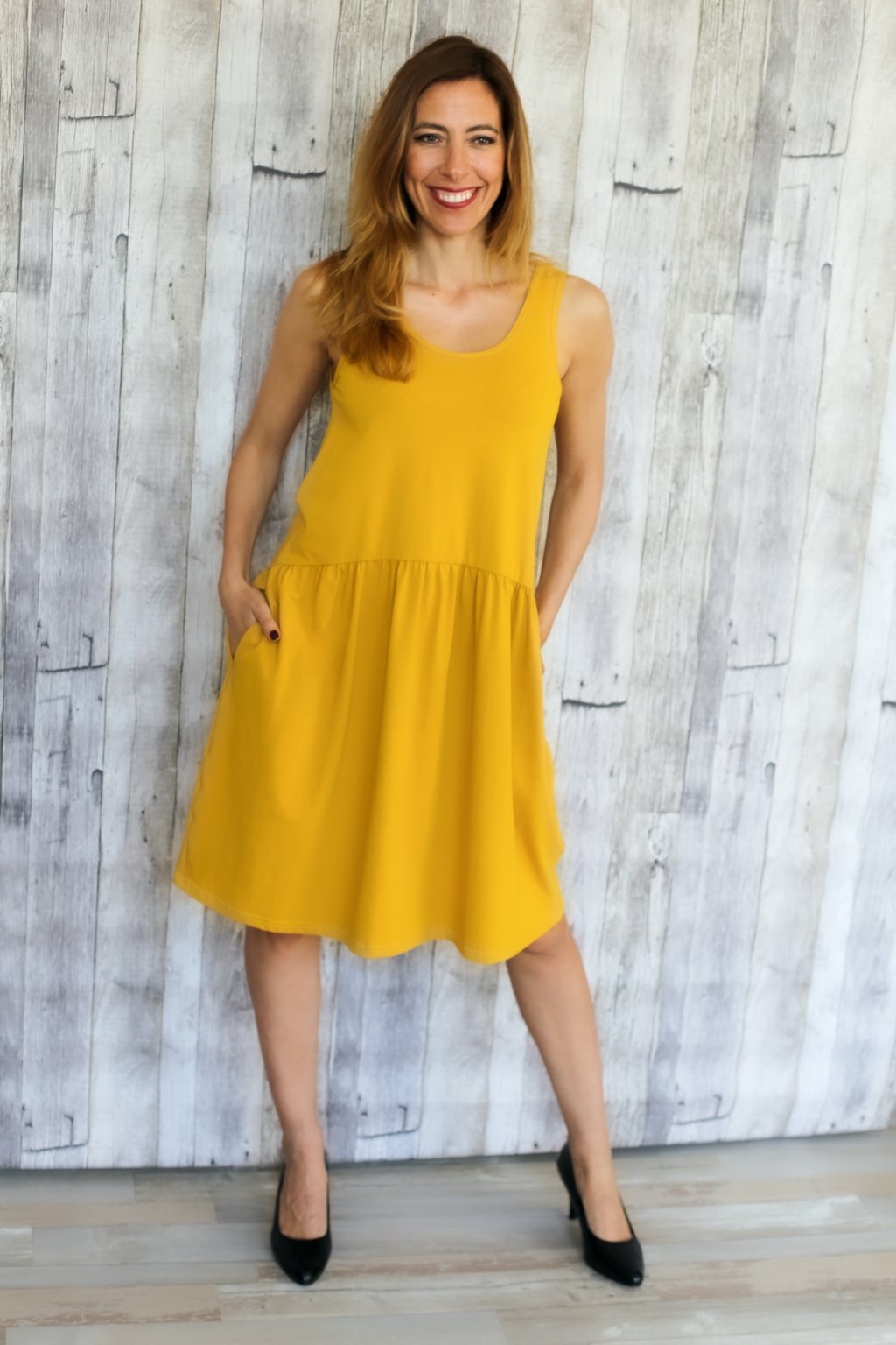 Letní šaty s volánem a kapsami Neda / Hořčicová