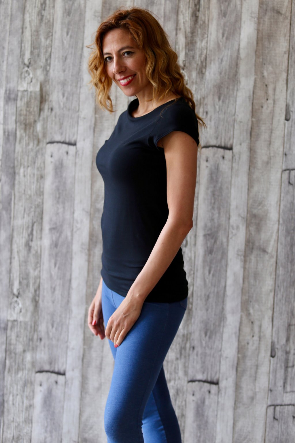 Modelka má na sobě velikost M. Na přání lze udělat 3/4 rukáv.