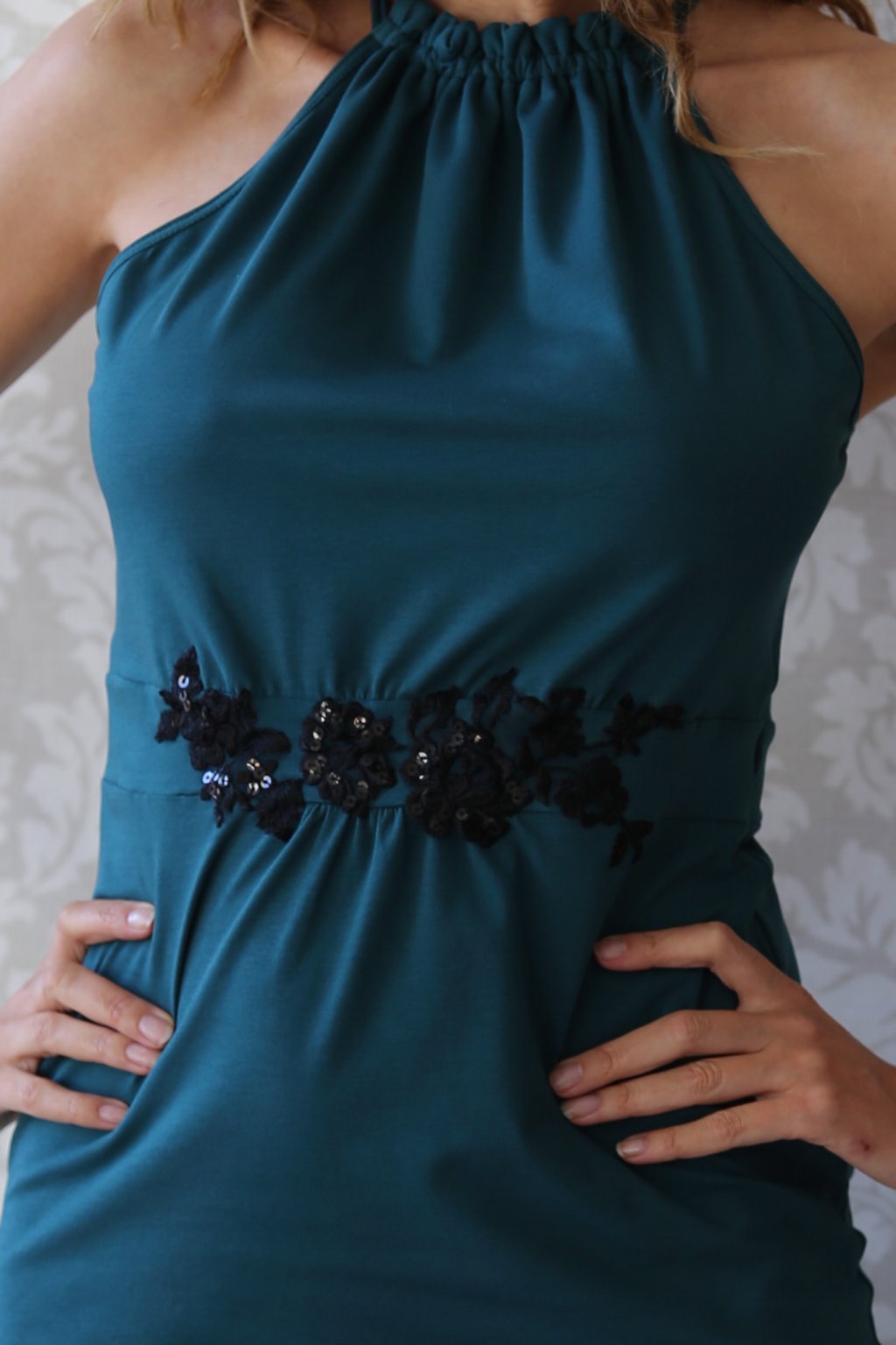 - řasení kolem krku a přes bříško: jsou volné a obepnuté tam, kde mají být