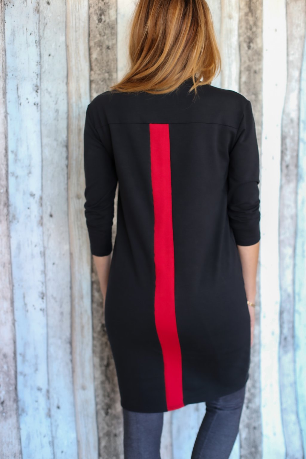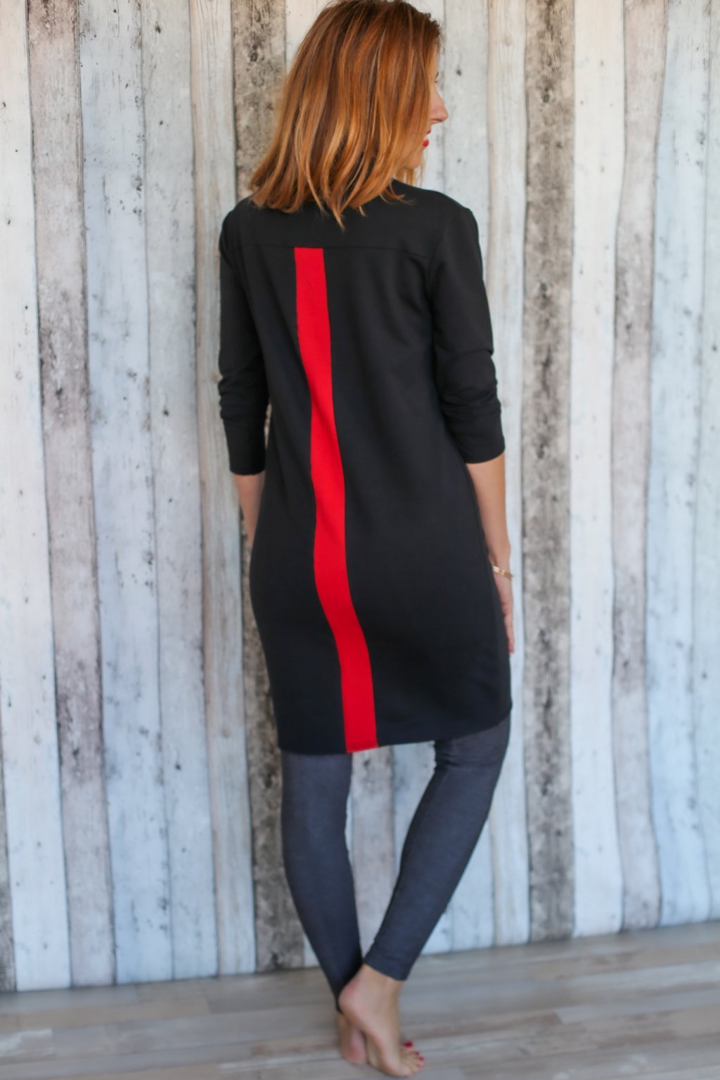 Rolákové šaty Olivie / Černá teplákovina s červenou