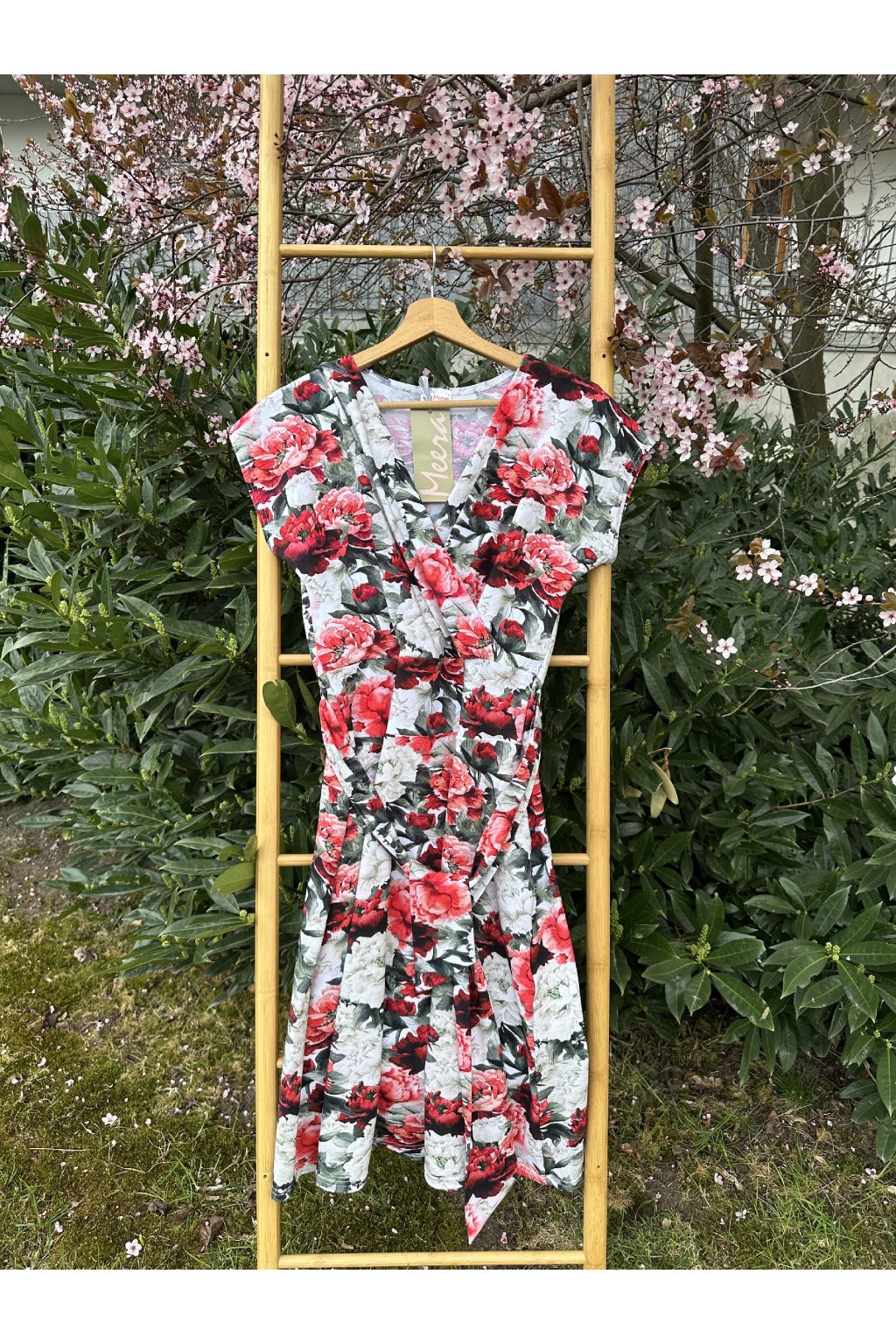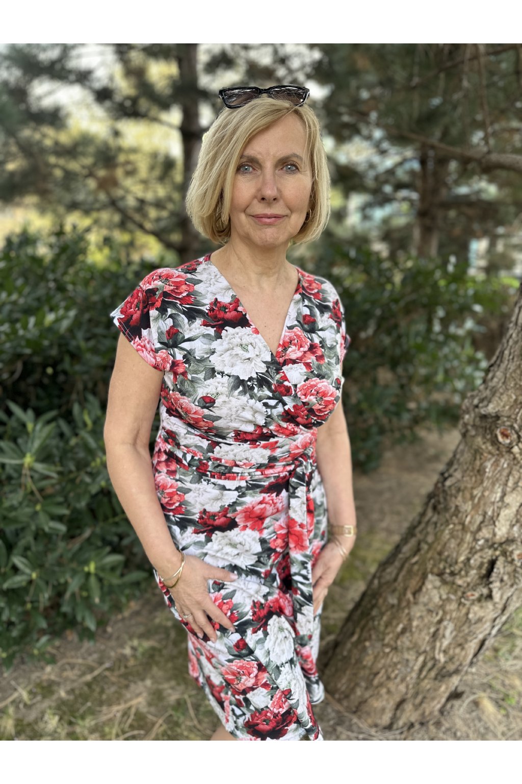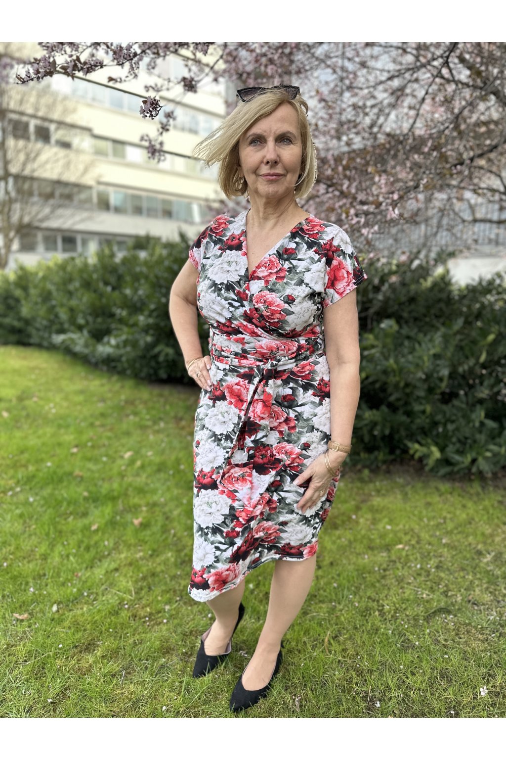 Šaty Nina s páskem, krátký rukáv / Divoké pivoňky