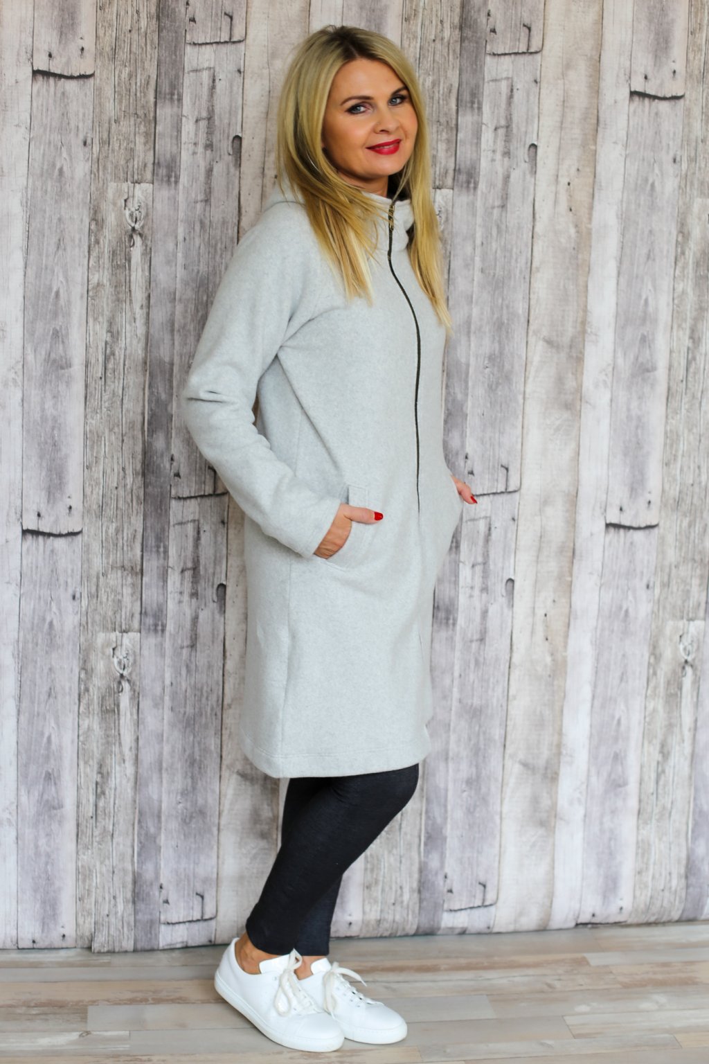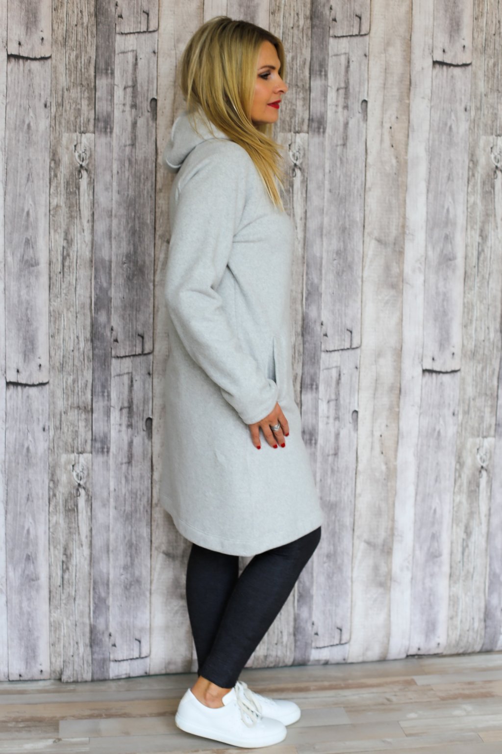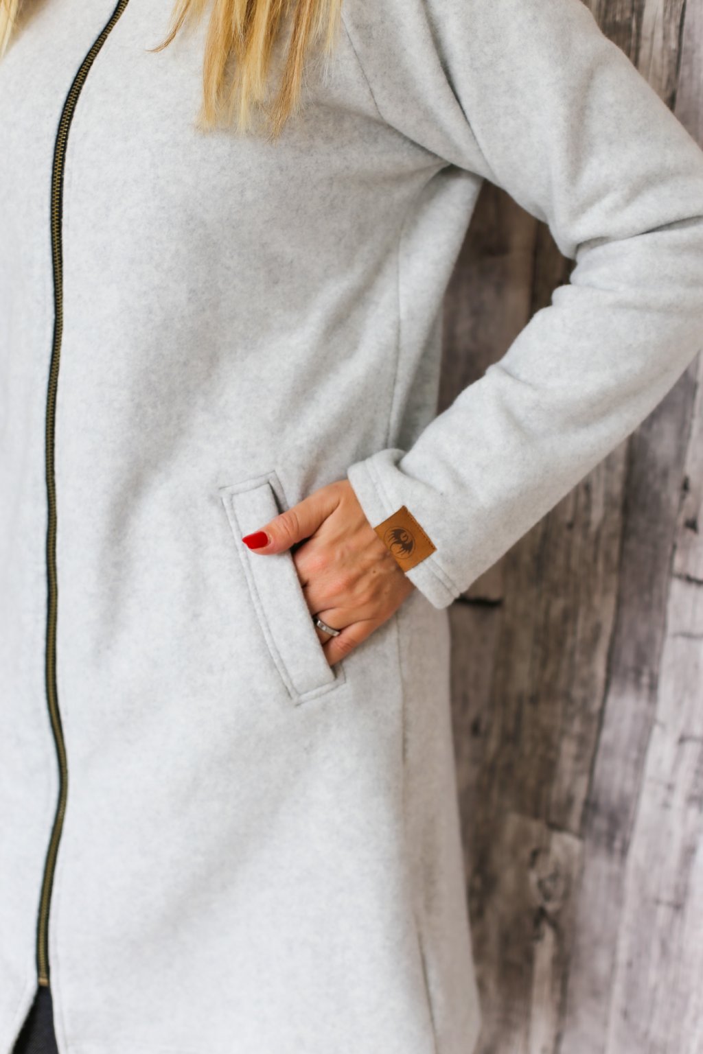 Šmrncovní kabát Psyché s kapucou / Světle šedý fleece