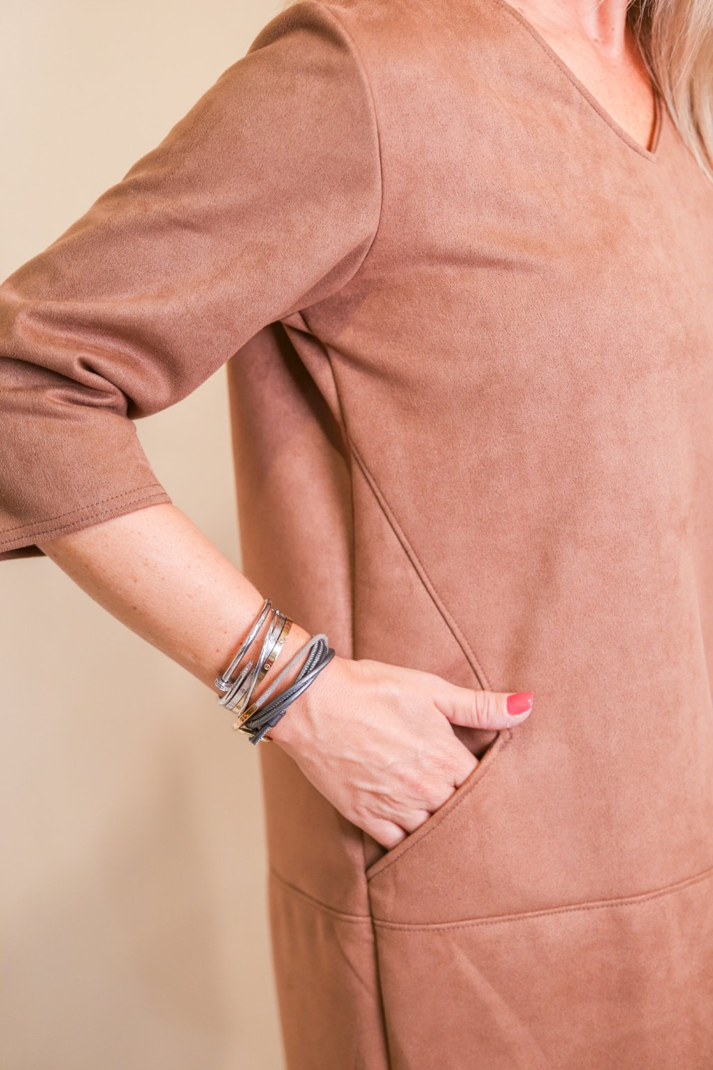 Ženské splývavé šaty Louisa s V výstřihem / Světle hnědý semiš